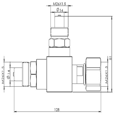 本产品的目的在于提供一种便于对SF6电气设备中的SF6气体密度继电器进行自动校验或更换的装配接头,重要的是该装配接头的充气口、微水测试口、校验口和气体关断口是同一个口,不要额外设置充气接口、微水测试口,就可以在同一位置对SF6电气设备进行充气以及微水测试或关断SF6电气设备的SF6气路对密度继电器进行校验。